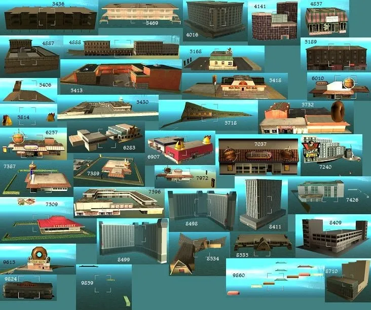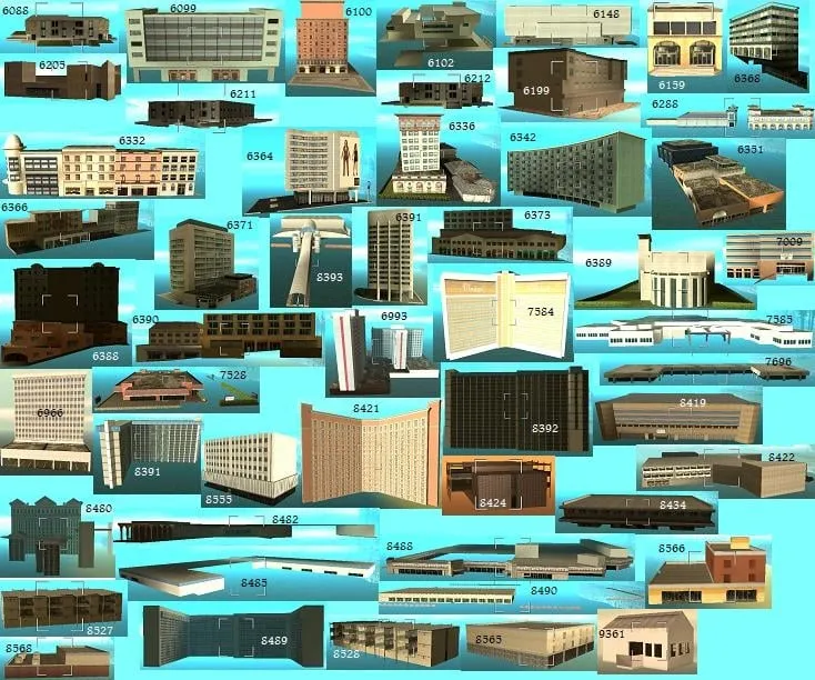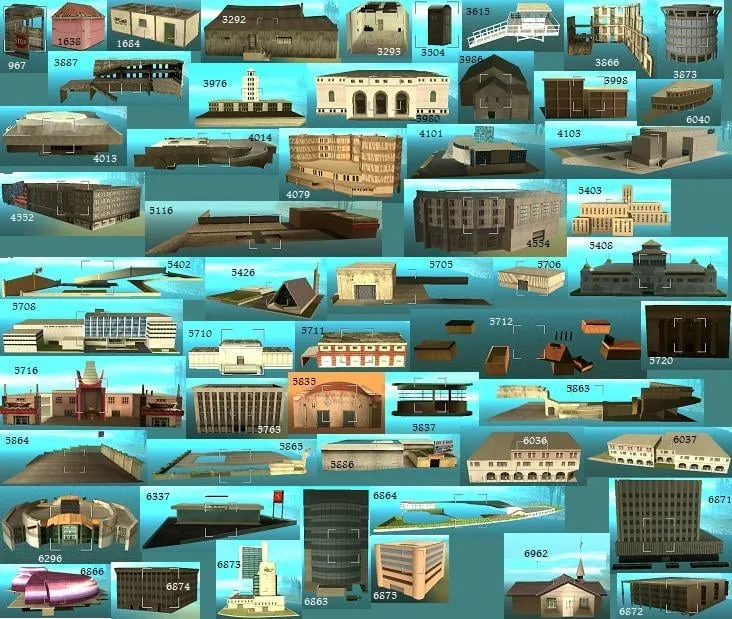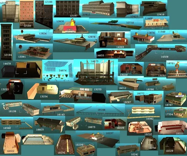 This page displays a subset of object model IDs that can be placed using the Map Editor, createObject and createBuilding.